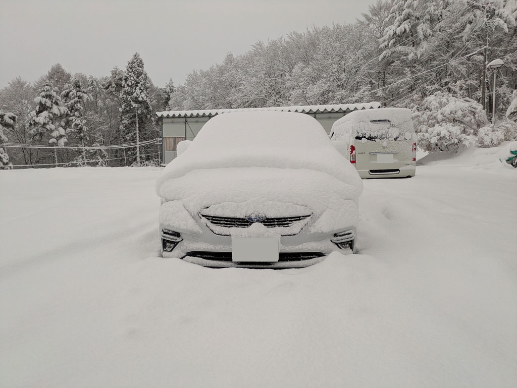 駐車場は30cm強の降雪があり、除雪されていない所はスタックしてしまう危険性があるような状態でした。