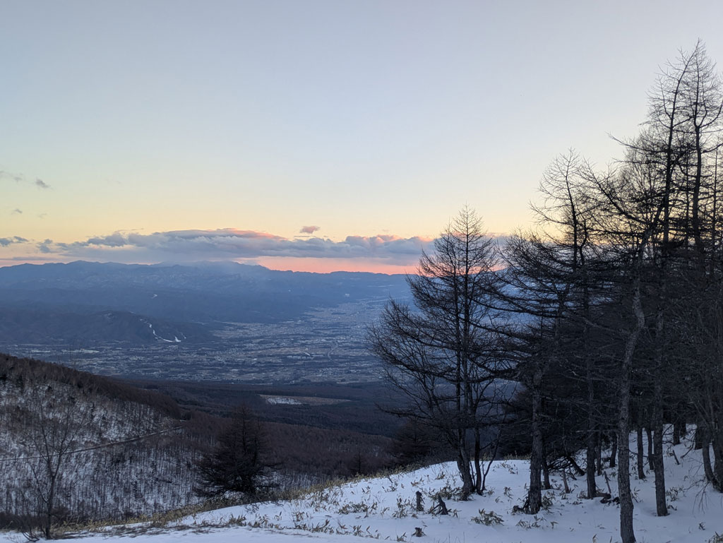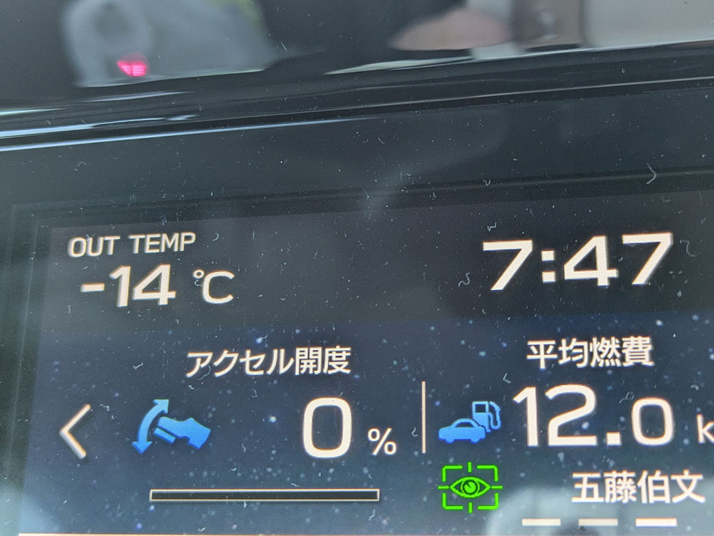 放射冷却で冷えて、宿舎の小諸市内で-11℃だったので、「高峰マウンテンパーク」まで上がると何処まで下がるか心配していましたが、快晴で少し上がったのか-14℃