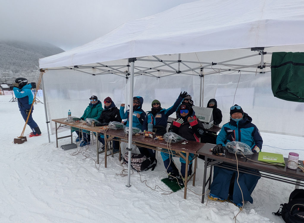 運営側は「高峰マウンテンパーク」のご厚意により、ゴールテントの横幕を付けて頂き、更に暖房の準備もして下さり、今回は今シーズン最強寒波が来ているのでとても助かりました。