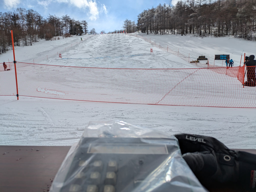 選手は休憩スペースに入ることは出来るかもしれませんが、ローテーションもあり、ゲレンデで待っている時間も結構長いかもしれないので、冷えない様に気を付けて下さい。