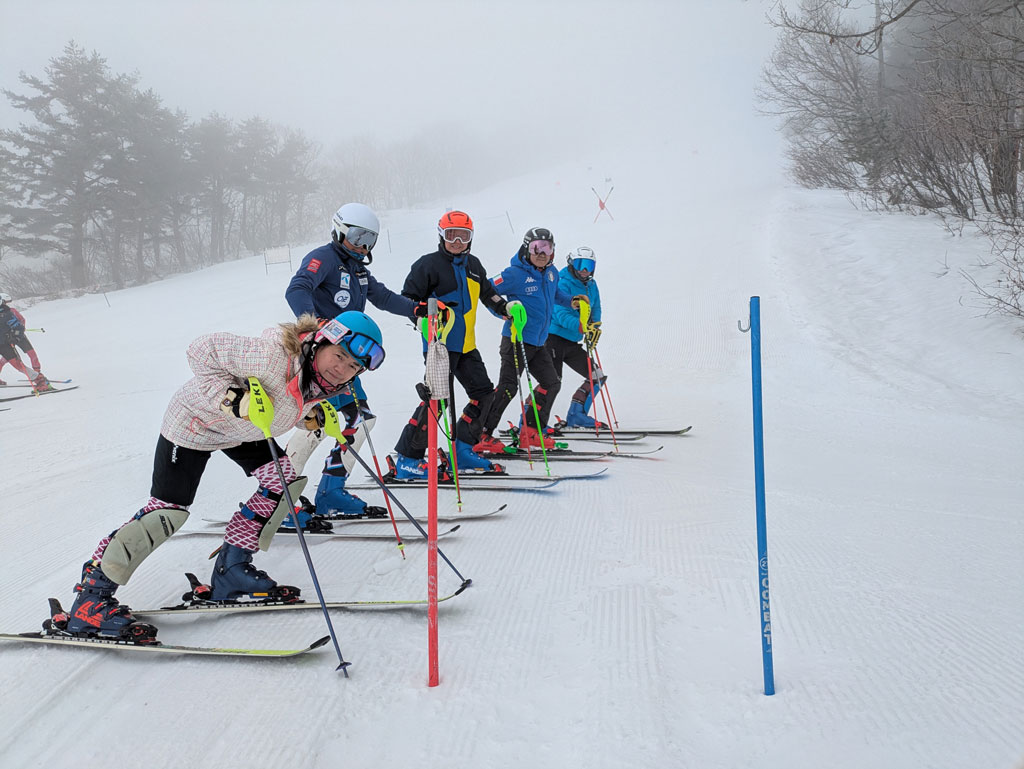 初日のこともあり、ポールやブラッシュマーカーの中だとまだ上手く行かない時もありましたが、フリートレーニングでの滑りは良い感じになって来ていると思います。