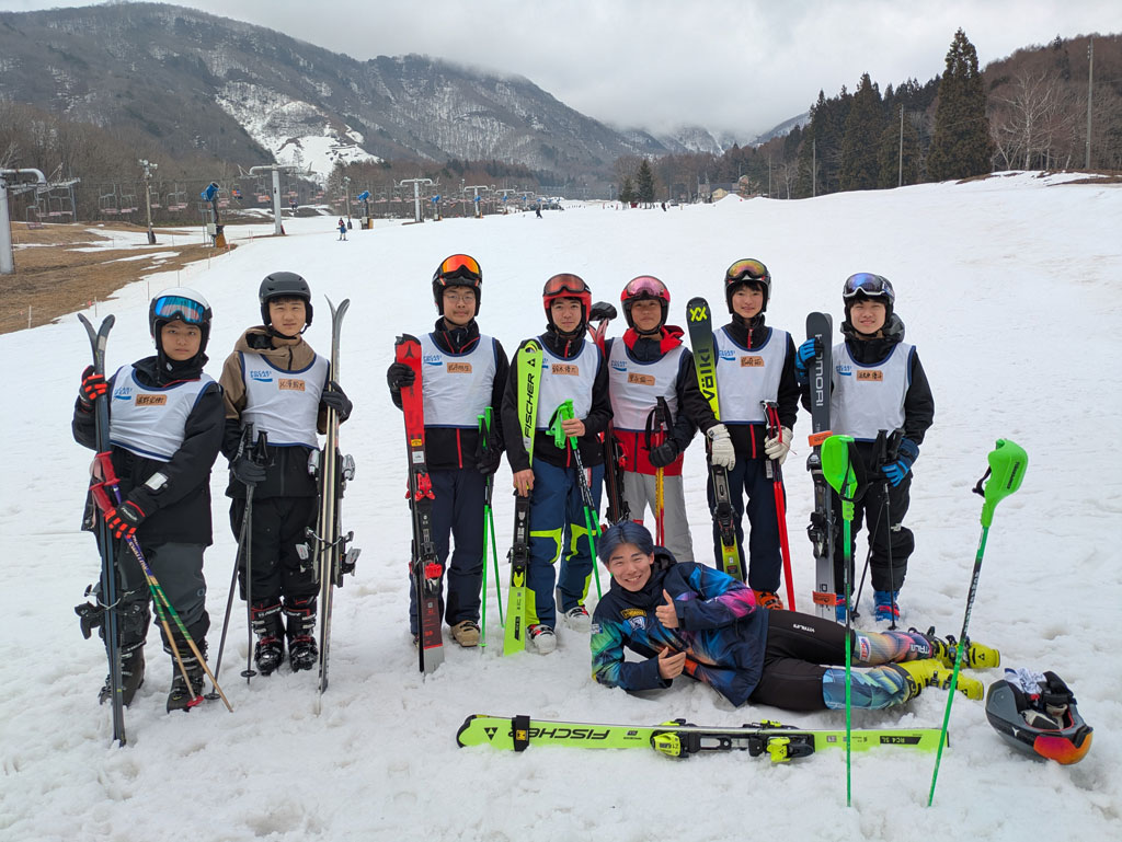 午後の「麻布学園スキー部」の参加選手と、一番下でもこれだけの残雪がある「小丸山スキー場」!!