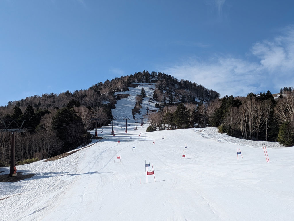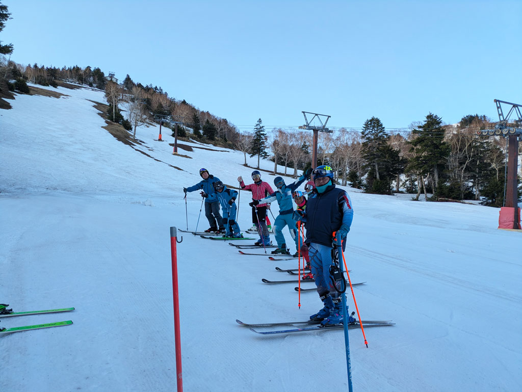 「馬の背コース」を2本滑った後は、本日もナチュラルバーンではありますが、急斜面の「イベントコース」を使ってのトレーニングが出来ました。