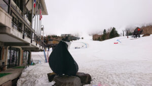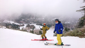 昨日の午後からの雨が夜に雪に変わって「熊の湯スキ